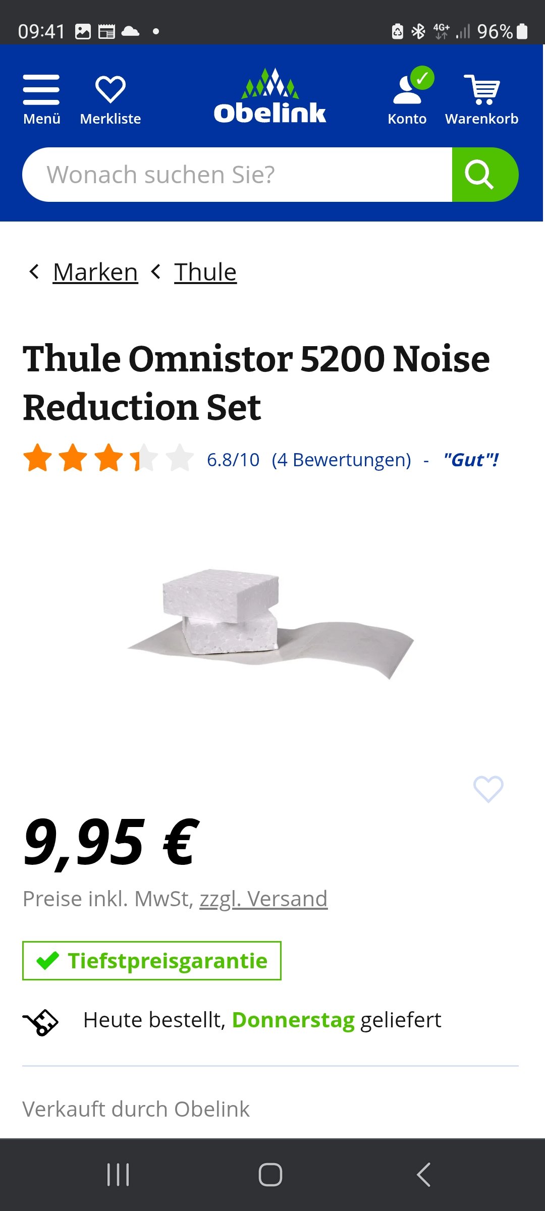 Con il tendalino Thule Omnistor 5200 può capitare che si sentano degli scricchiolii quando c'è vento. Questo fastidioso problema può essere risolto facilmente grazie a questo set. Il rumore è provocato dalla striscia di plastica che si trova dal lato del veicolo e che è direttamente in contatto con il telo del tendalino. Attaccando un pezzo di nastro adesivo trasparente appena sopra le piastre in acciaio inossidabile non si sentirà più nessun rumore.