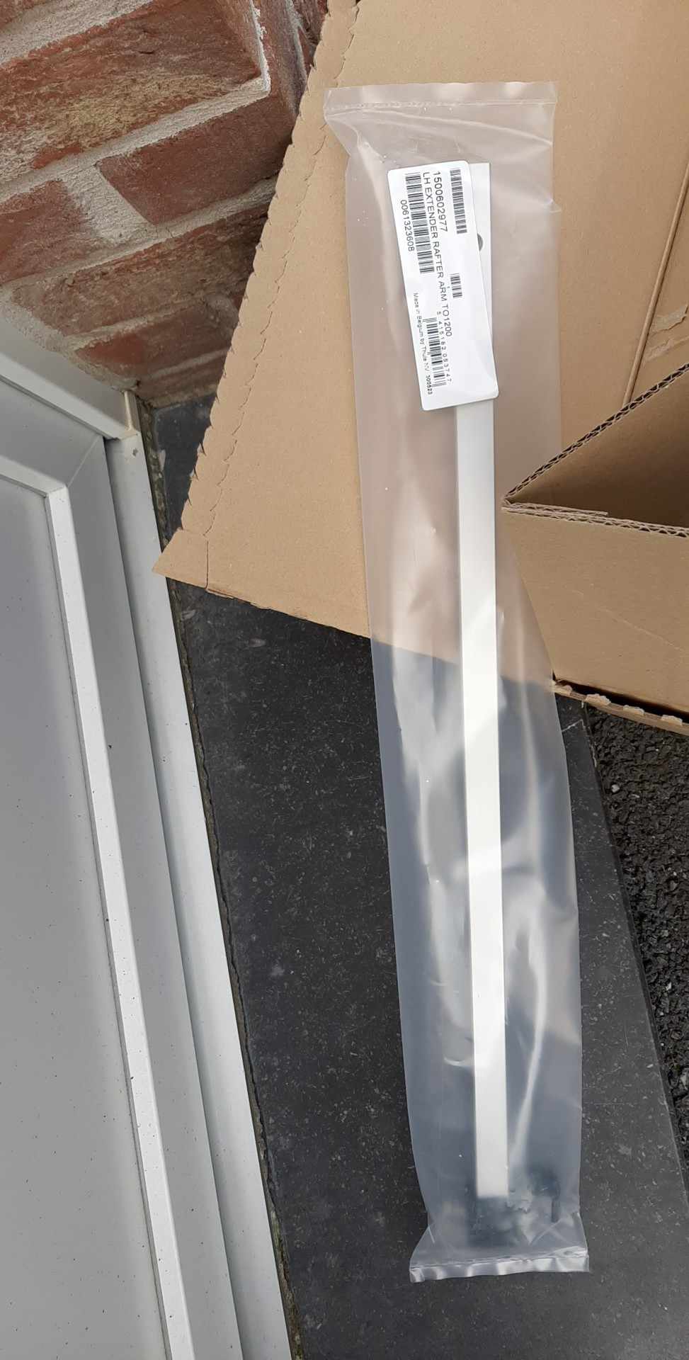 Il terminale braccio sinistro 230-325 è adatto soltanto ai tendalini Thule Omnistor 1200 con una lunghezza totale del sacchetto di 230, 260, 300 o 325 cm. La misura del tendalino è indicata sull’adesivo all’interno del sacchetto.