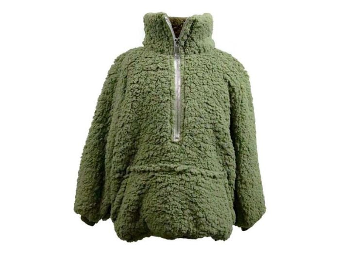 Questo pile oversize per bambini è realizzato in poliestere di alta qualità. La morbida fodera interna offre un comfort elevato e un piacevole calore. Il pile è dotato di un comodo collo e di una zip che arriva fino alla tasca a marsupio, rendendolo particolarmente pratico.