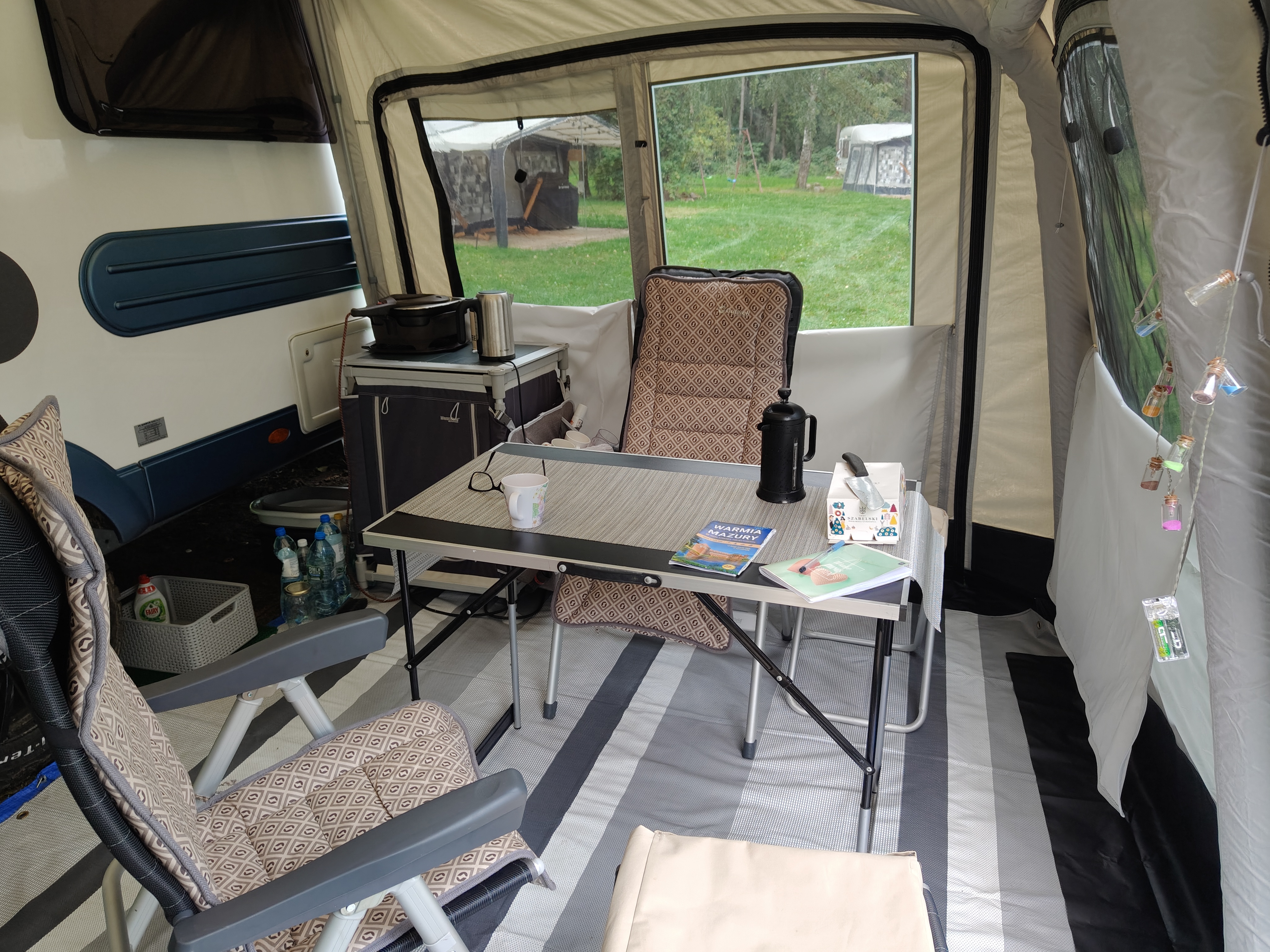 La tenda/veranda offre la possibilità di aggiungere un'estensione acquistabile separatamente per aumentare lo spazio di soggiorno.